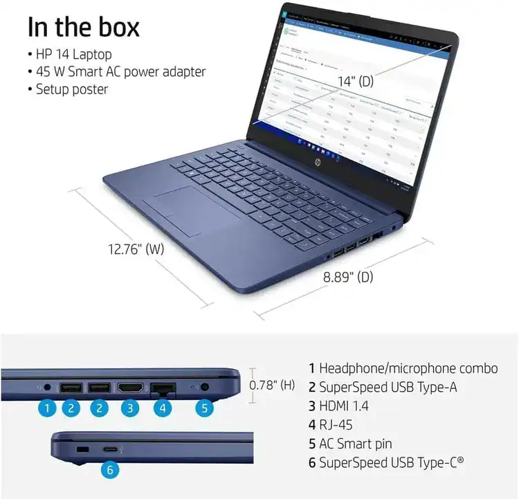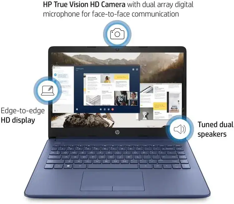 HP 14 INTEL CELERON Dual-Core/8GB/64NVME+128GB SCDARD/14"INCH/WINDOWS BLUE Up to 8 hours