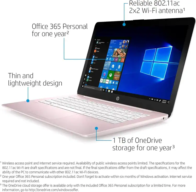 HP 14 Laptop AMD Dual-Core A4-9120E 4GBRAM 64GB 14INCH TOUCH Windows ROSE GOLD PINK
