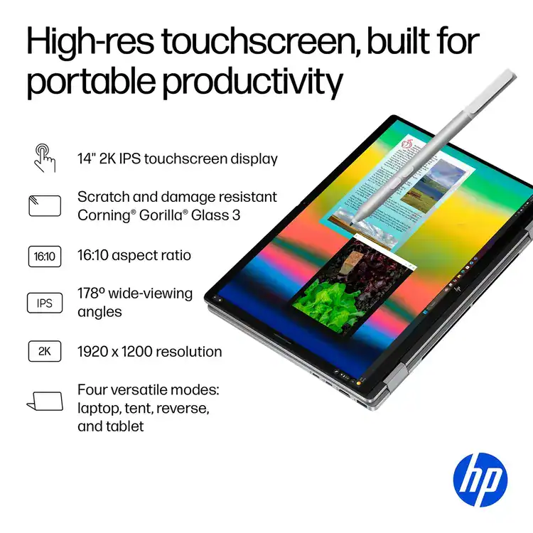 Find your creative touch with intuitive control of your PC right from the screen featuring 1920 x 1200 resolution and 178-degree wide-viewing angles. Push your creativity with photo editing AI apps and optimized refresh rates from AMD FreeSync technology. Multitouch-enabled, IPS (in-plane switching), edge-to-edge glass, Corning Gorilla Glass 3.