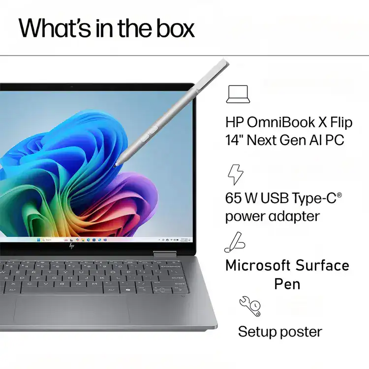 Equipped with the durable Corning Gorilla Glass 3, engineered for unparalleled scratch resistance. Helps reduce accidental damage with strong, more durable protection than most displays. Plus the HP OmniBook X Flip 14 Next Gen AI PCs are designed using recycled metals and post-consumer recycled plastics.