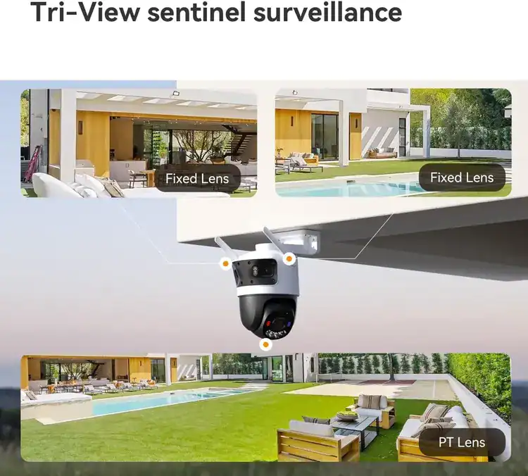 The Cruiser Triple’s PT lens supports 0°-355° horizontal rotation and 0°-90° vertical rotation for 360° defense of your home.