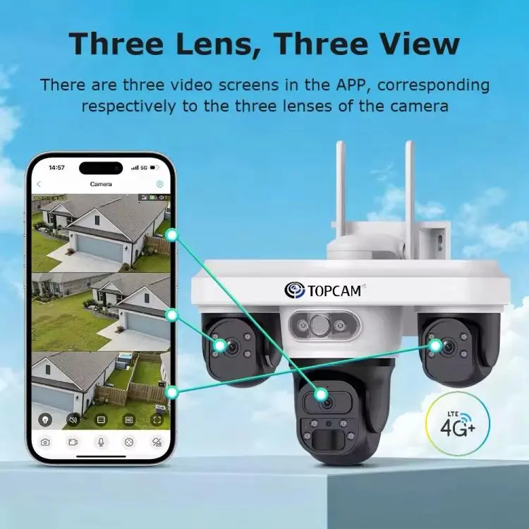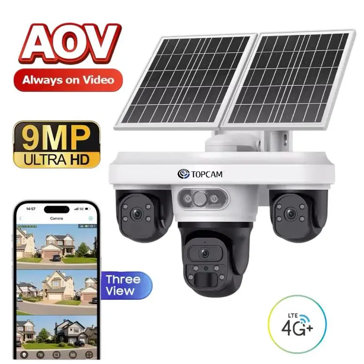 AOV 4G Lte Solar Battery Cam Triple Lens PTZ Auto Human Tracking 24/7 Recording Mode