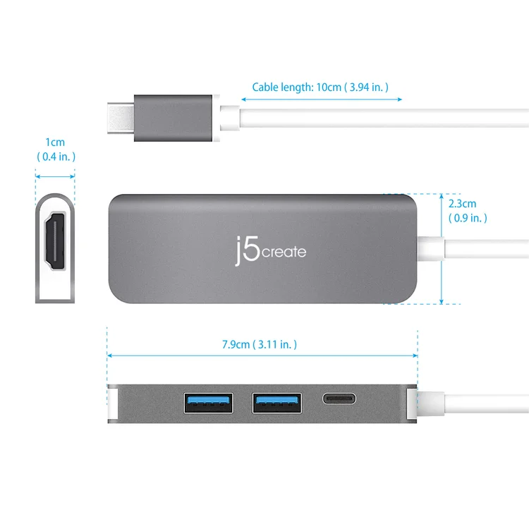 j5create JCD371 USB-C w/ PD 2.0, 2 USB Type-A, HDMI Port Hub