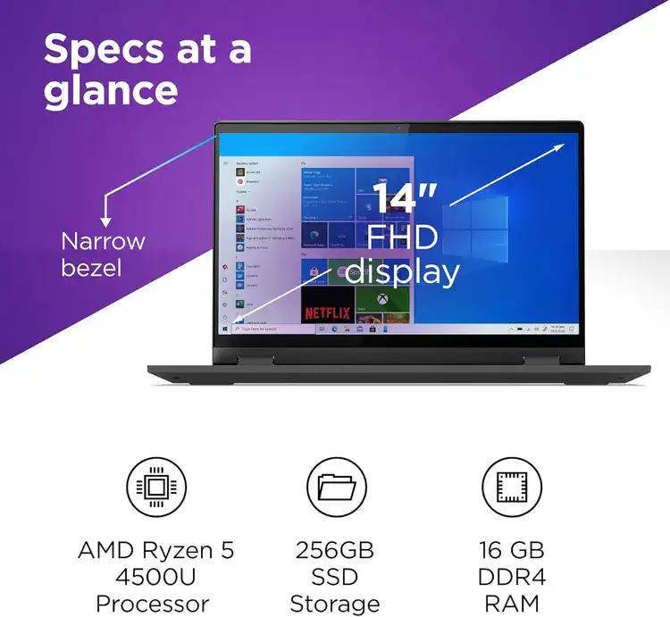 LENOVO FLEX 5 X360 AMD RYZEN 5 5500U 13TH GEN 8GB 256GB SSD 14 FULL HD TOUCHSCREEN ATI VGA WIN 11