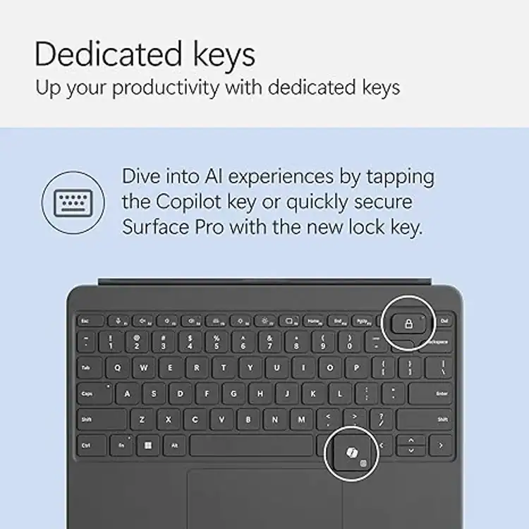 Microsoft 12″ Surface Pro Keyboard Cover, Precision Touchpad, Mechanical Keys, Copilot Key, Lock Key, Magnetic Attachment, Smooth-Matte Palm Rest & Alcantara Cover, Slate