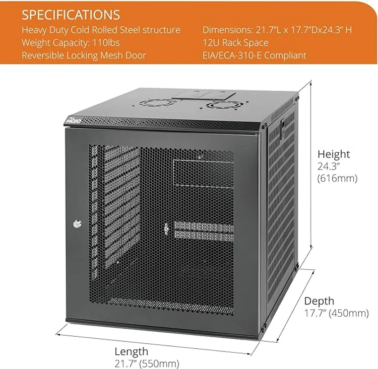 SINGLE DOOR, FRONT GLASS DOOR,NSA.6409 9U REMOVABLE SIDE PANELS, WITH 1 FAN (600×450).