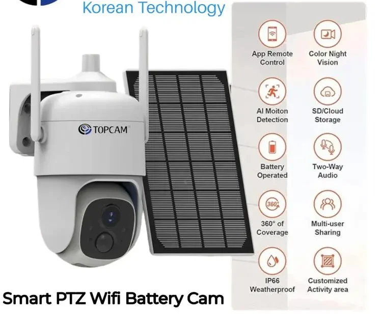 IPCAM Wifi PTZ Battery Solar Smart Cam 2 Way Audio + Solar Panel