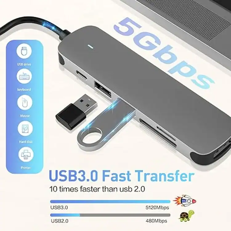 CONVERTERS USB C HUB 6 in 1 with USB 3.0 4K-HDMI